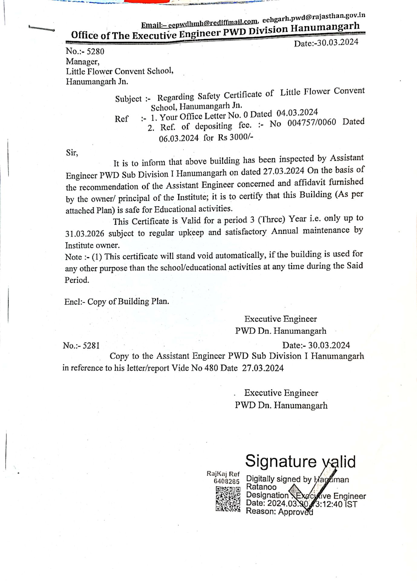 At Little Flower Convent School, Hanumangarh, we believe in maintaining complete transparency by sharing all essential documents and certificates as per CBSE norms. Our Mandatory Public Disclosure section ensures that parents, stakeholders, and governing bodies can easily access the required information related to school safety, infrastructure, affiliations, and statutory compliances.